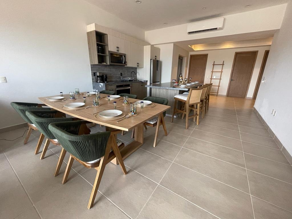 Brand new and fully equipped condo with 2 bedrooms, 2 full bathrooms, 1 sofa bed, 1 half bath, full kitchen, dining room, living room, balconies overlooking at the pools and bay views, laundry room and all the condo areas to make a completely relaxing stay. Casa Coral is located on Tower 1 of Mantarraya Residences,.